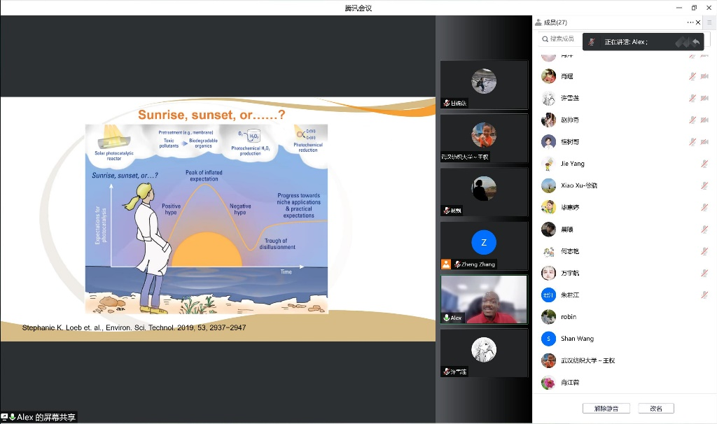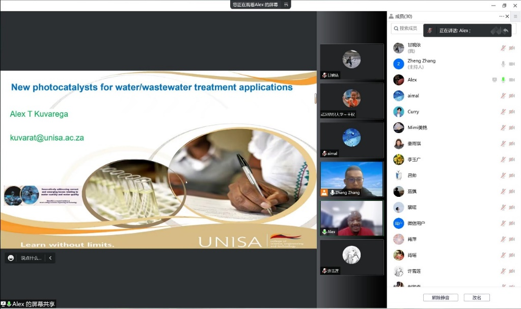 On December 6th, the 289th Sunshine Forum was held online by the School of Chemistry and Chemical Engineering. Prof. Alex Kuvarega from University of South Africa was invited to give an academic report entitled "New photocatalysts for water/wastewater treatment applications", which was chaired by Dr. Zheng Zhang. The faculty members, graduate and undergraduate representatives participated in the discussion.